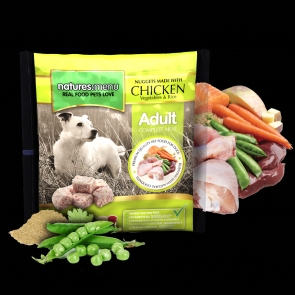 Eine Mischung aus Fleisch ,Gemüse,Kleie und Mais